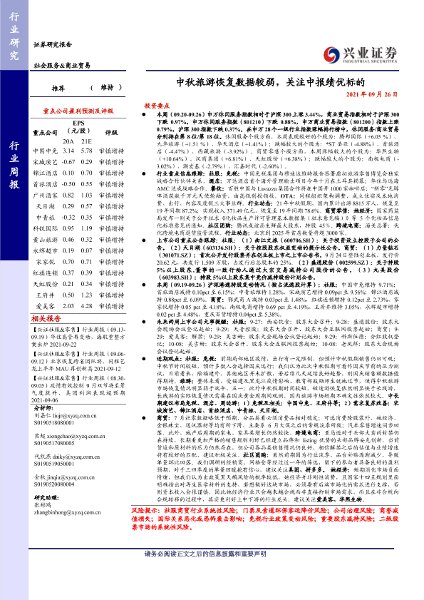 【兴业证券】【20210926】中秋旅游恢复数据较弱,关注中报绩优标的-23页