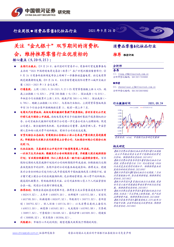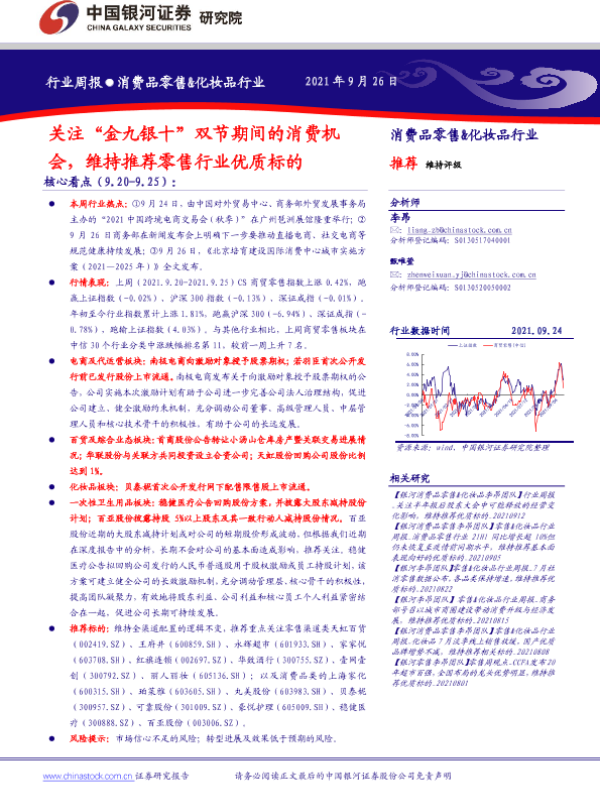 【银河证券】【20210926】关注“金九银十”双节期间的消费机会,维持推荐零售行业优质标的-33页