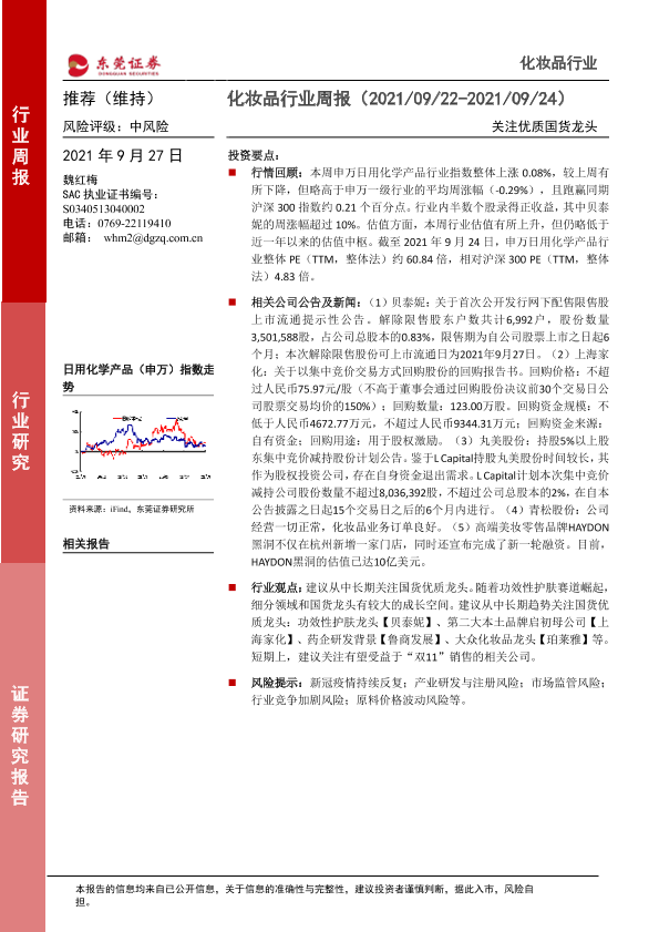 【东莞证券】【20210927】化妆品行业周报:关注优质国货龙头-8页