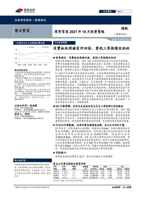 【国信证券】【20211007】2021年10月投资策略:消费板块情绪有所回温,重视三季报绩优标的-8页