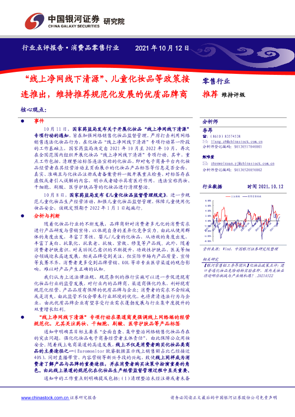 【银河证券】【20211012】零售行业:“线上净网线下清源”、儿童化妆品等政策接连推出-6页
