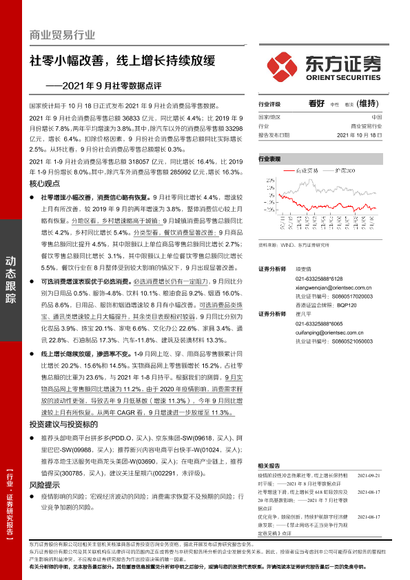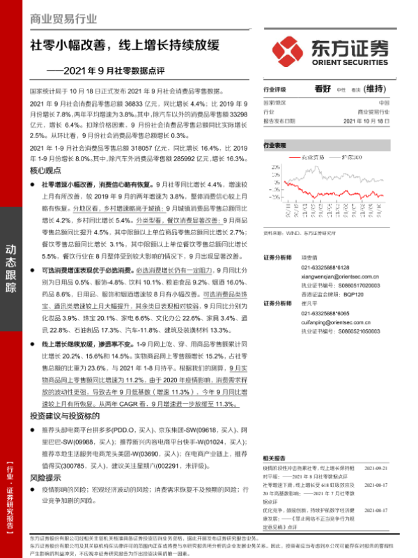 【东方证券】【20211018】2021年9月社零数据点评:社零小幅改善,线上增长持续放缓-7页