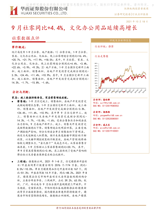 【华西证券】【20211018】9月社零同比+4.4%,文化办公用品延续高增长-7页