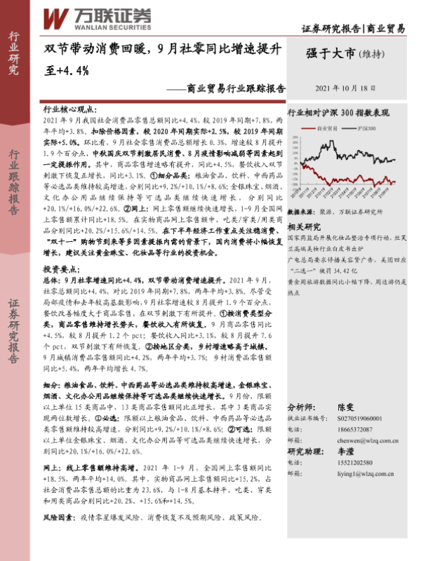 【万联证券】【20211018】双节带动消费回暖,9月社零同比增速提升至+4.4%-7页