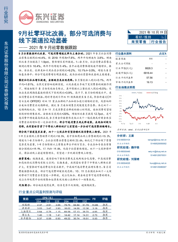 【东兴证券】【20211019】9月社零环比改善,部分可选消费与线下渠道拉动显著-5页