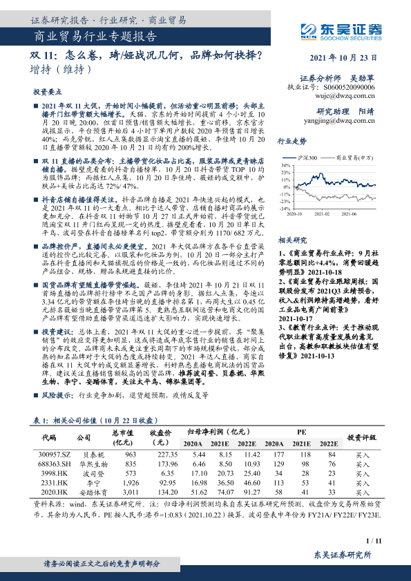 【东吴证券】【20211023】双11:怎么卷,琦/娅战况几何,品牌如何抉择?-11页
