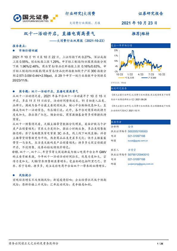 【国元证券】【20211023】大消费行业双周报:双十一活动开启,直播电商高景气-26页