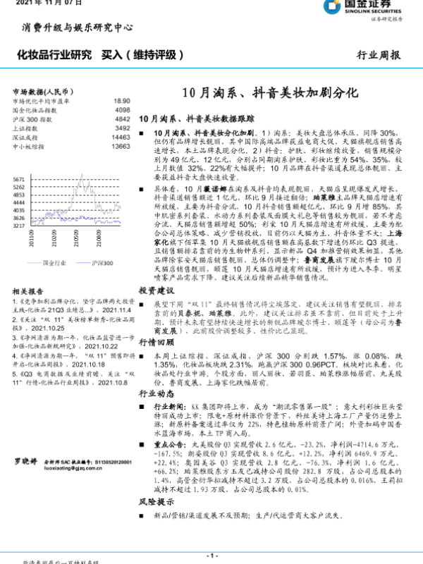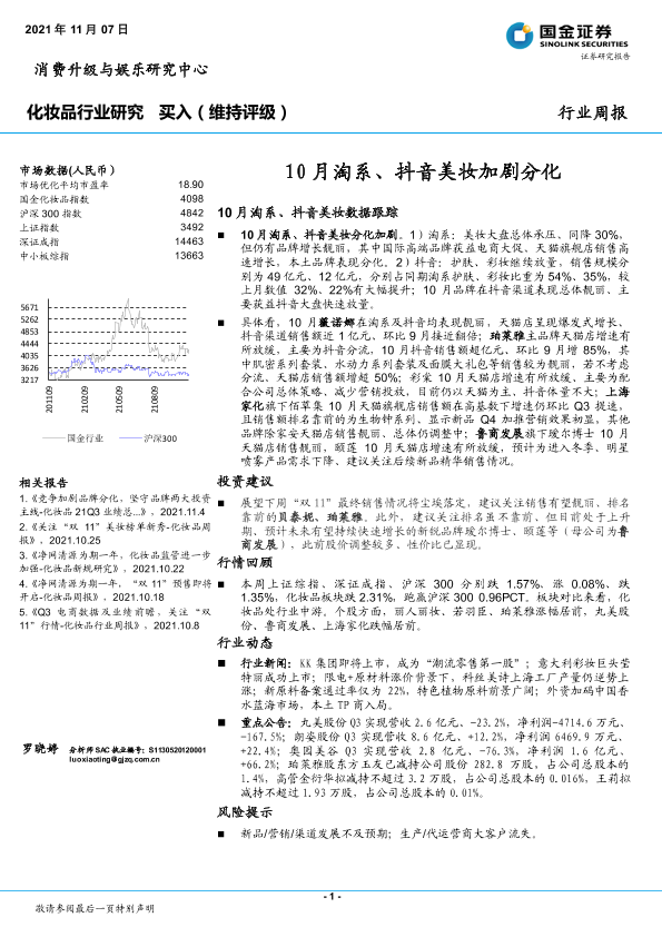 【国金证券】【20211107】10月淘系、抖音美妆加剧分化-11页