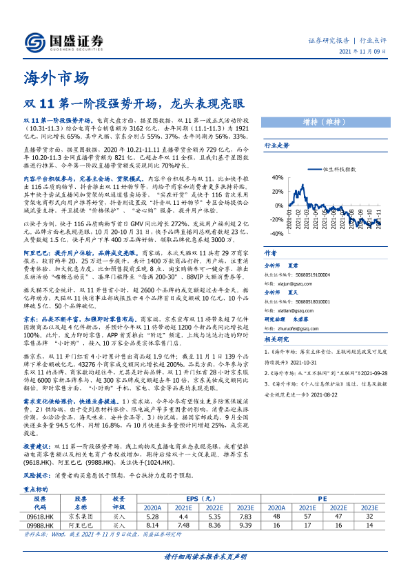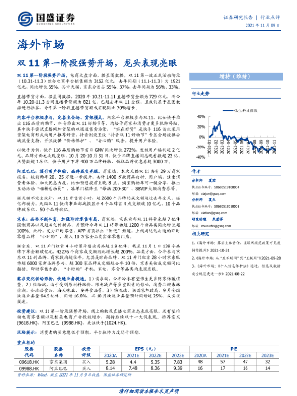 【国盛证券】【20211109】电商行业海外市场:双11第一阶段强势开场,龙头表现亮眼-5页