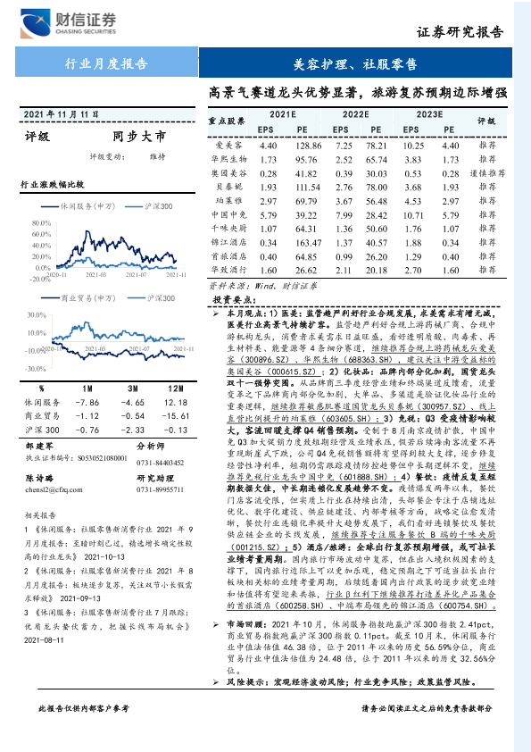【财信证券】【20211111】高景气赛道龙头优势显著,旅游复苏预期边际增强-11页