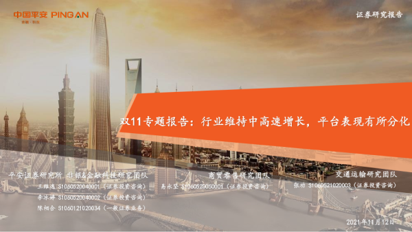 【平安证券】【20211112】电商双11专题报告:行业维持中高速增长,平台表现有所分化-31页