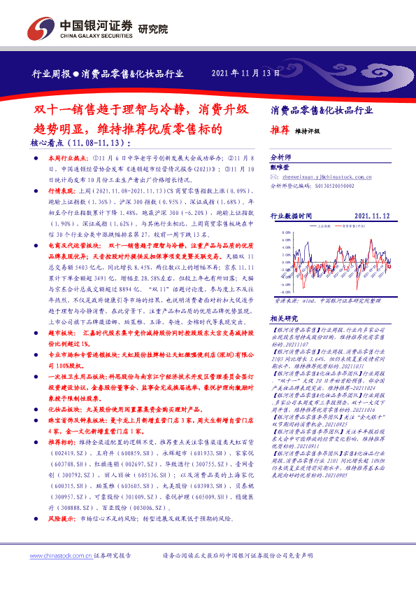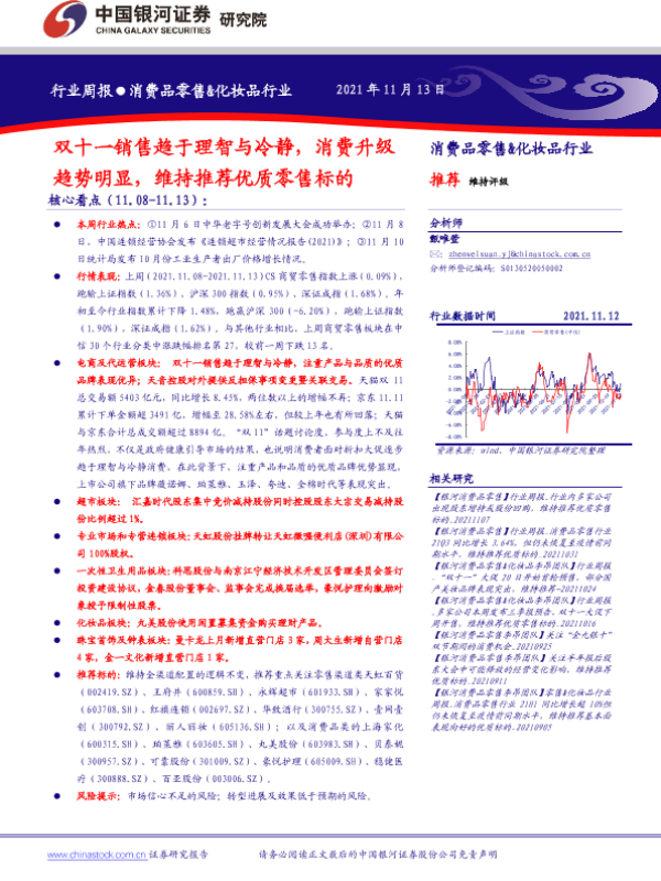 【银河证券】【20211113】双十一销售趋于理智与冷静,消费升级趋势明显,维持推荐优质零售标的-34页