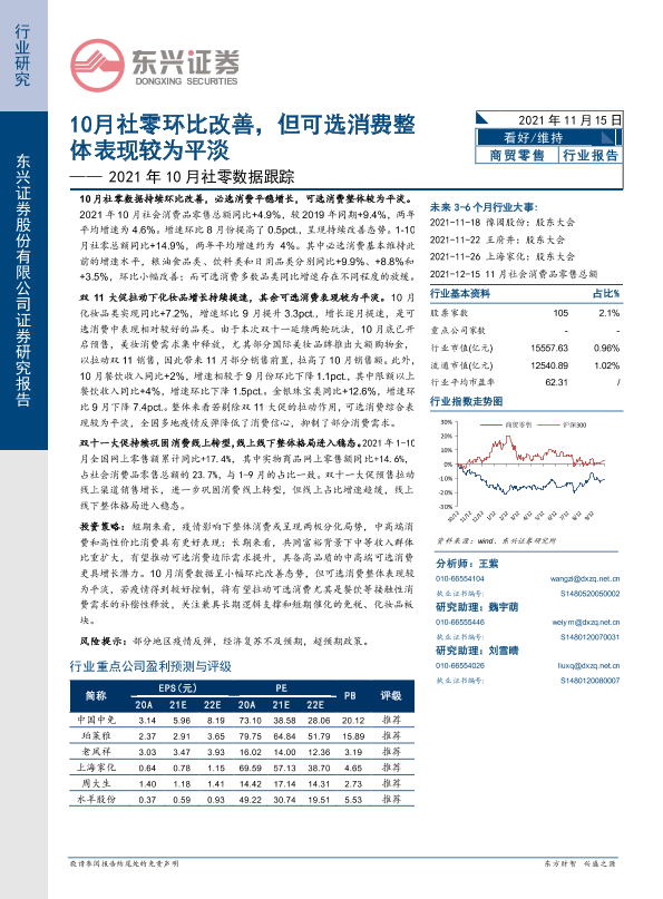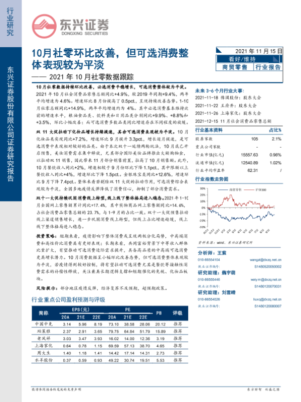 【东兴证券】【20211115】10月社零环比改善,但可选消费整体表现较为平淡-6页