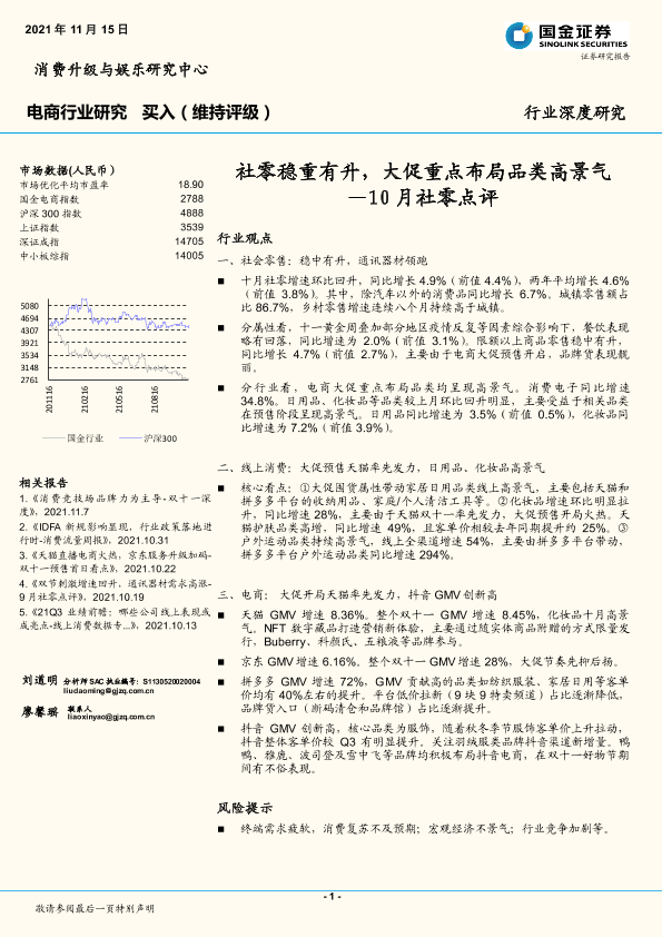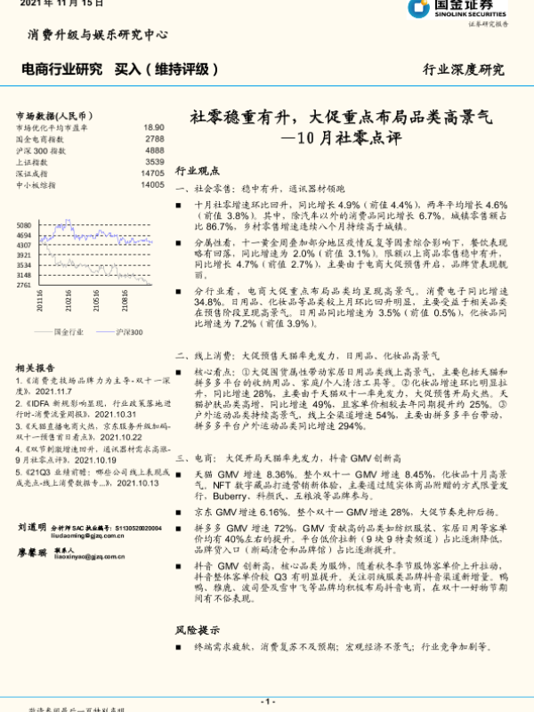 【国金证券】【20211115】10月社零点评:社零稳重有升,大促重点布局品类高景气-21页