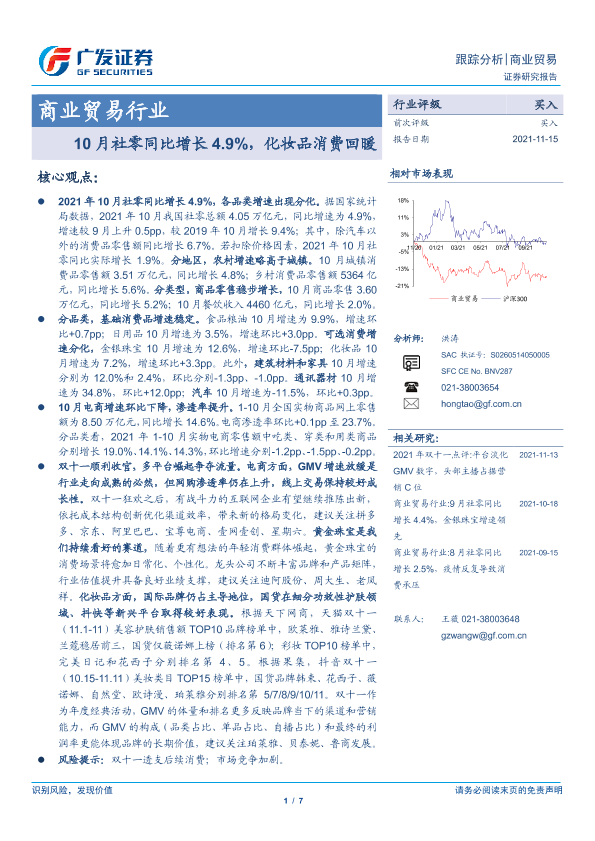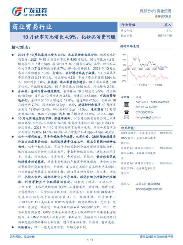 【广发证券】【20211115】10月社零同比增长4.9%,化妆品消费回暖-7页