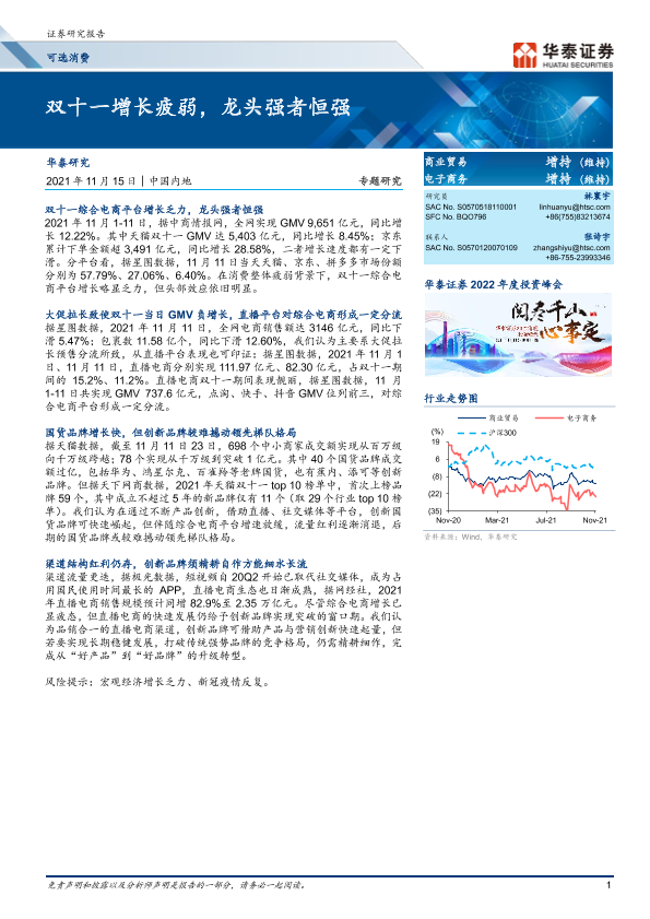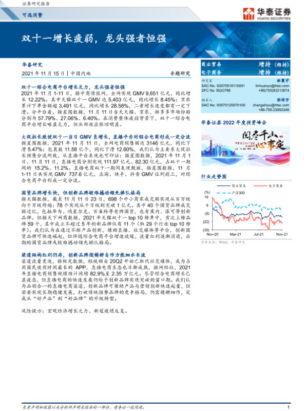 【华泰证券】【20211115】商业贸易行业:双十一增长疲弱,龙头强者恒强-6页