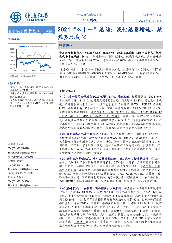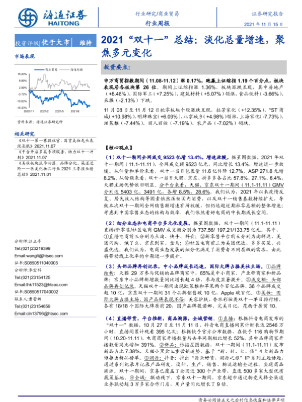 【海通证券】【20211115】2021“双十一”总结:淡化总量增速,聚焦多元变化-11页
