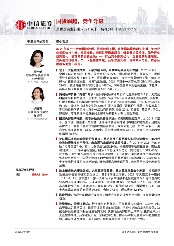 【中信证券】【20211115】美妆及商业行业2021双十一特征分析-23页