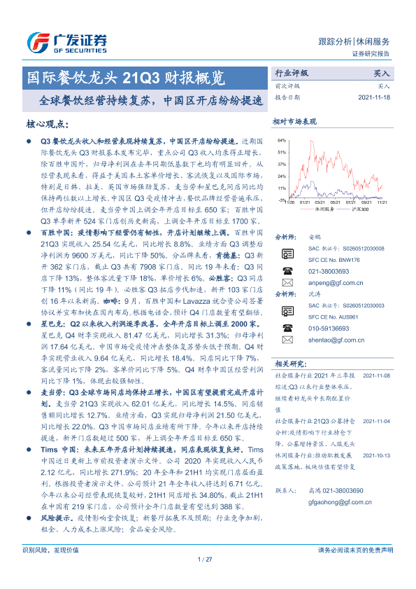 【广发证券】【20211118】国际餐饮龙头21Q3财报概览:全球餐饮经营持续复苏,中国区开店纷纷提速-27页