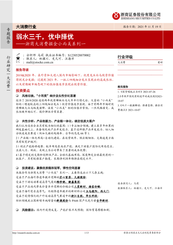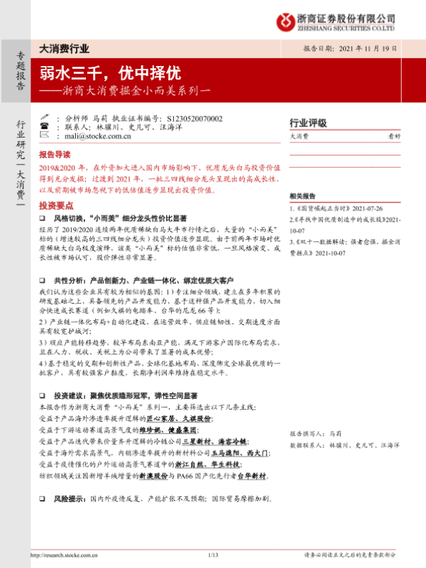 【浙商证券】【20211119】浙商大消费掘金小而美系列一:弱水三千,优中择优-13页