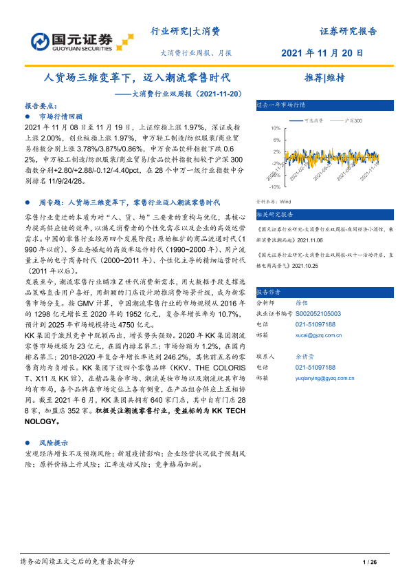 【国元证券】【20211120】大消费行业双周报:人货场三维变革下,迈入潮流零售时代-26页