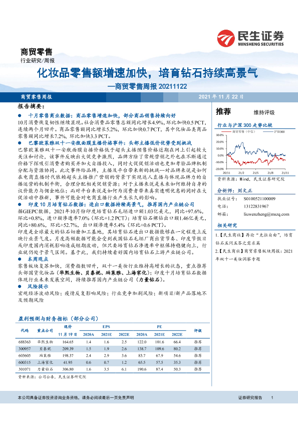 【民生证券】【20211122】商贸零售周报:化妆品零售额增速加快,培育钻石持续高景气-23页