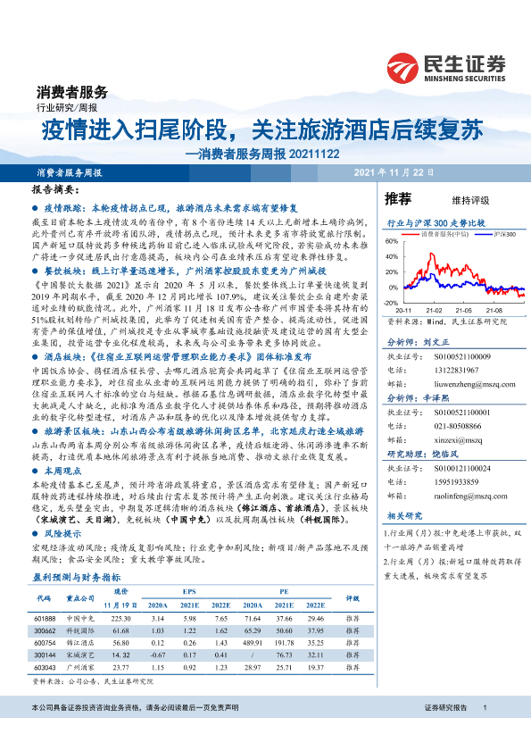 【民生证券】【20211122】消费者服务周报:疫情进入扫尾阶段,关注旅游酒店后续复苏-25页