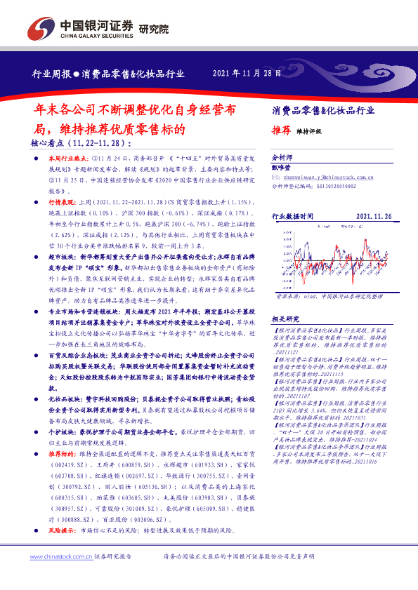 【银河证券】【20211128】年末各公司不断调整优化自身经营布局,维持推荐优质零售标的-33页