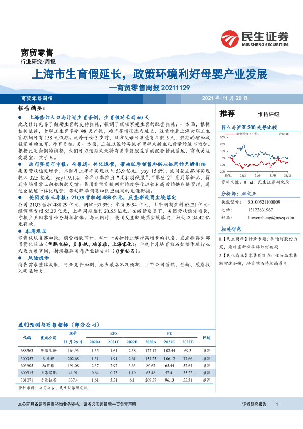 【民生证券】【20211129】商贸零售周报:上海市生育假延长,政策环境利好母婴产业发展-24页