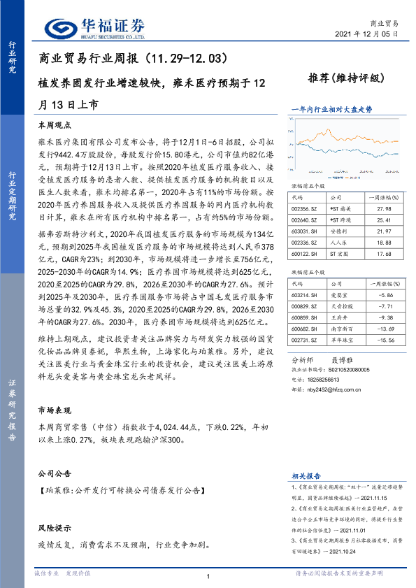 【华福证券】【20211205】商业贸易行业周报:植发养固发行业增速较快-7页