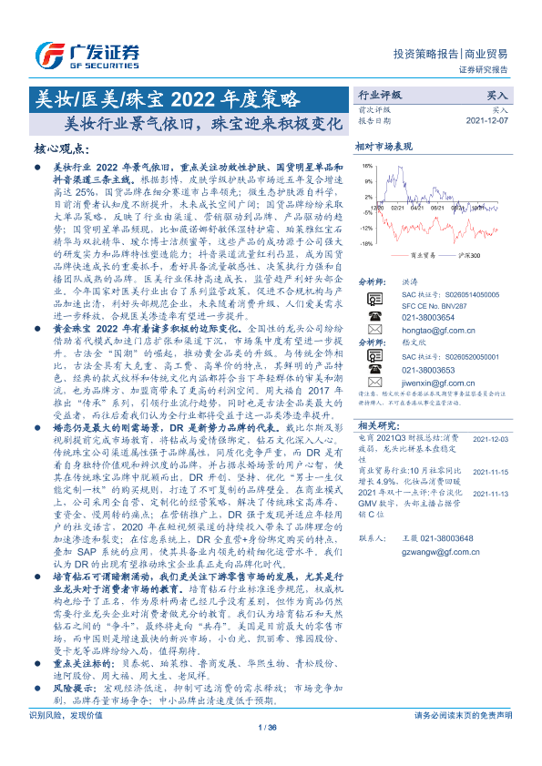 【广发证券】【20211207】美妆 医美 珠宝2022年度策略:美妆行业景气依旧,珠宝迎来积极变化-36页