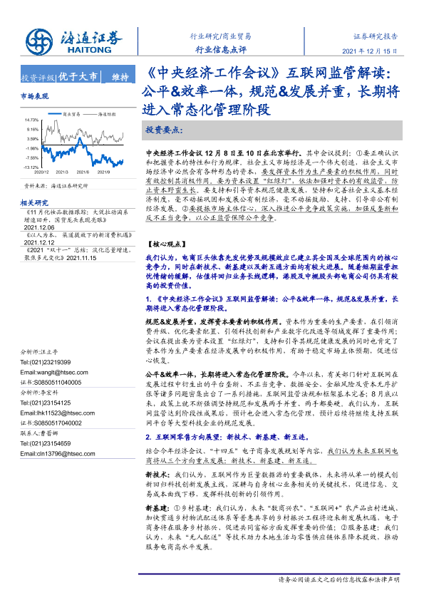 【海通证券】【20211215】商业贸易行业信息点评:《中央经济工作会议》互联网监管解读-8页