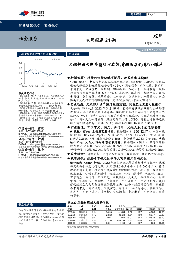 【国信证券】【20211219】社会服务双周报第21期:文旅部出台新疫情防控政策,首旅酒店定增顺利落地-8页