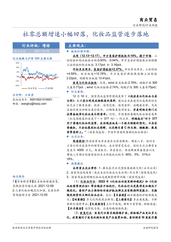 【华安证券】【20211219】商业贸易行业周报:社零总额增速小幅回落,化妆品监管逐步落地-22页