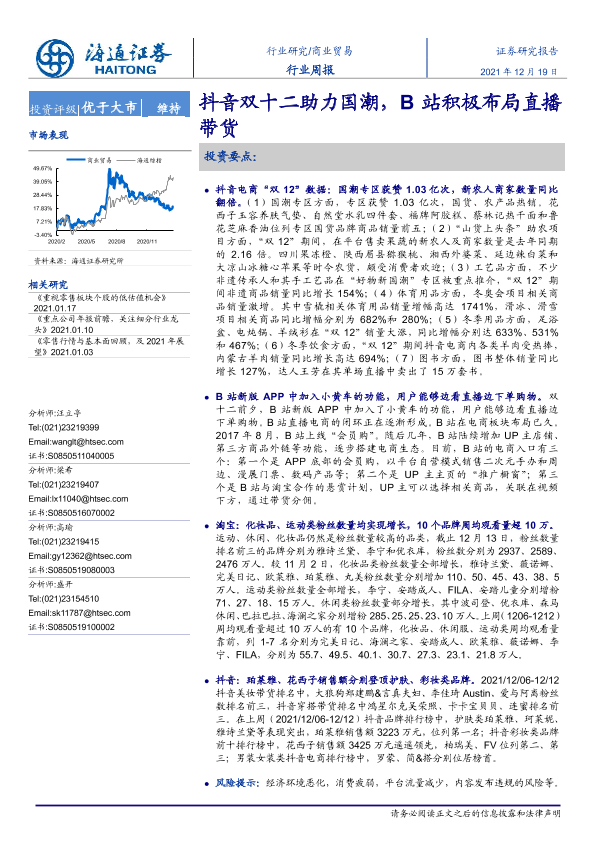 【海通证券】【20211219】商业贸易行业周报:抖音双十二助力国潮,B站积极布局直播带货-10页