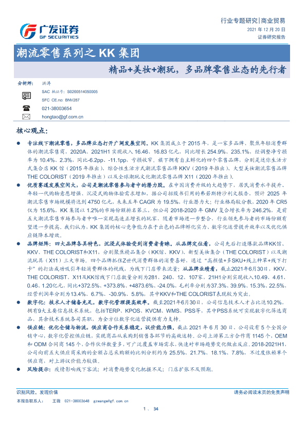 【广发证券】【20211220】商业贸易行业专题研究:潮流零售系列之KK集团 精品+美妆+潮玩,多品牌零售业态的先行者-34页