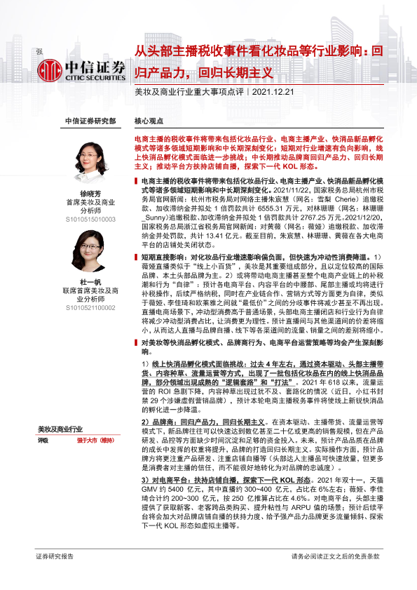 【中信证券】【20211221】美妆及商业行业重大事项点评:从头部主播税收事件看化妆品等行业影响-3页