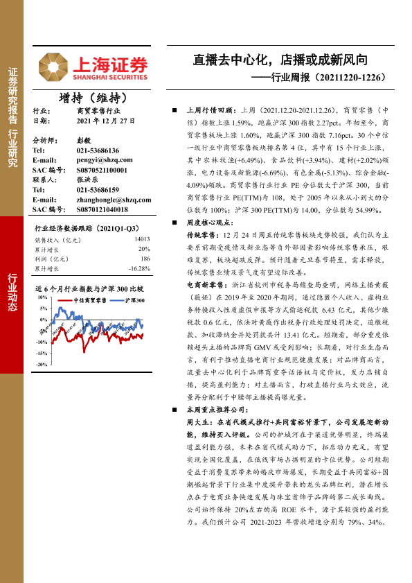 【上海证券】【20211227】商贸零售行业周报:直播去中心化,店播或成新风向-14页