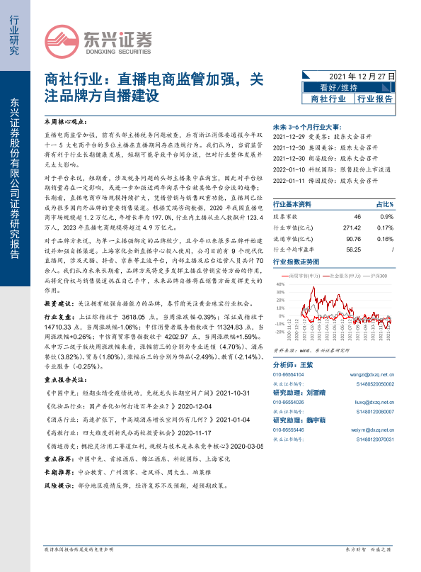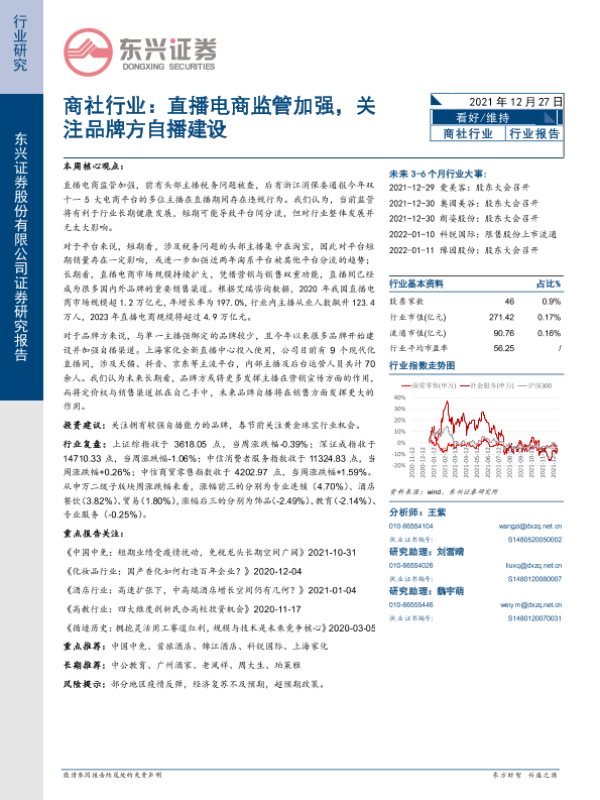 【东兴证券】【20211227】商社行业:直播电商监管加强,关注品牌方自播建设-10页