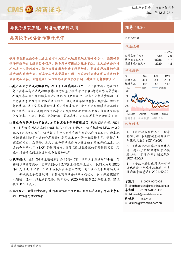 【海通证券】【20211227】美团快手战略合作事件点评:与快手互联互通,到店优势得到巩固-2页