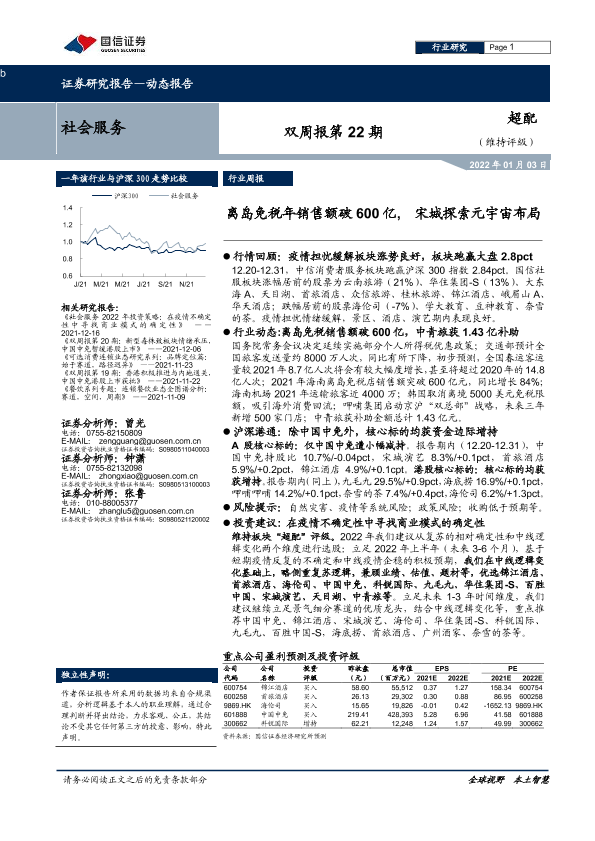 【国信证券】【20220103】社会服务双周报第22期:离岛免税年销售额破600亿,宋城探索元宇宙布局-8页