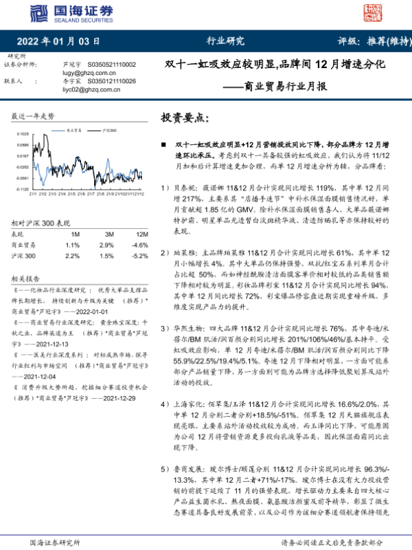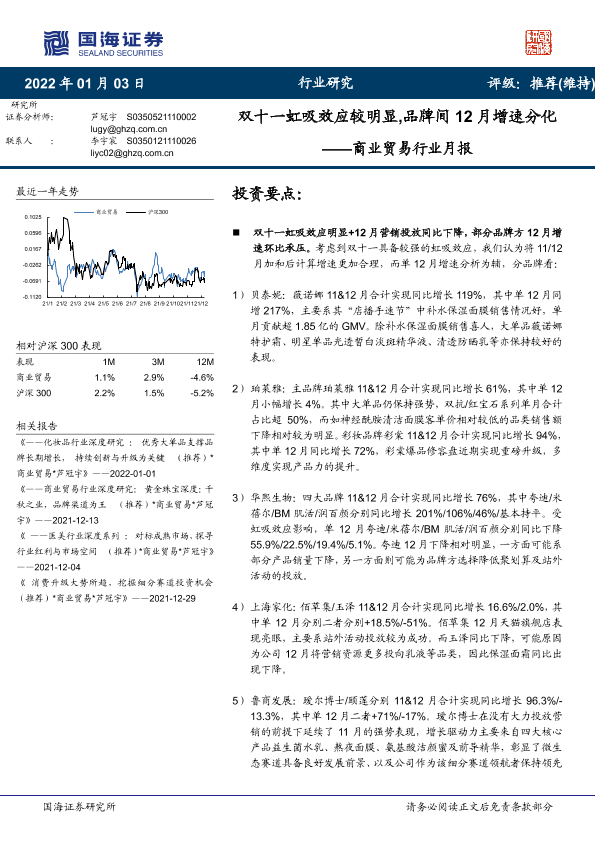 【国海证券】【20220103】商业贸易行业月报:双十一虹吸效应较明显,品牌间12月增速分化-4页