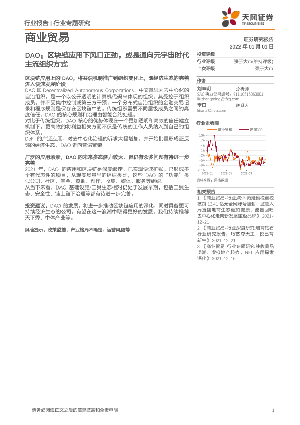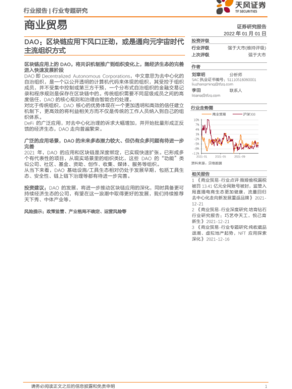 【天风证券】【20220101】DAO:区块链应用下风口正劲,或是通向元宇宙时代主流组织方式-13页