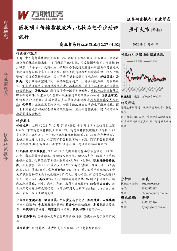 【万联证券】【20220104】商业贸易行业周观点:医美项目价格指数发布,化妆品电子注册证试行-11页