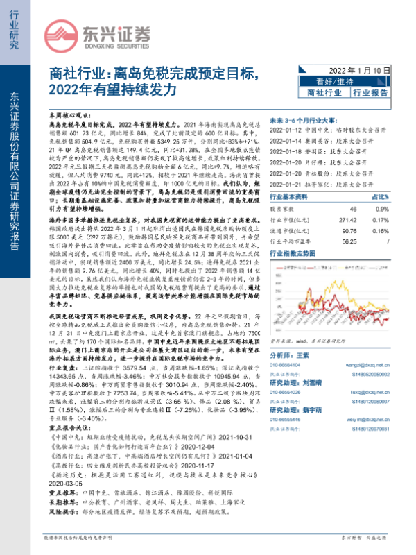 【东兴证券】【20220110】商社行业:离岛免税完成预定目标,2022年有望持续发力-11页