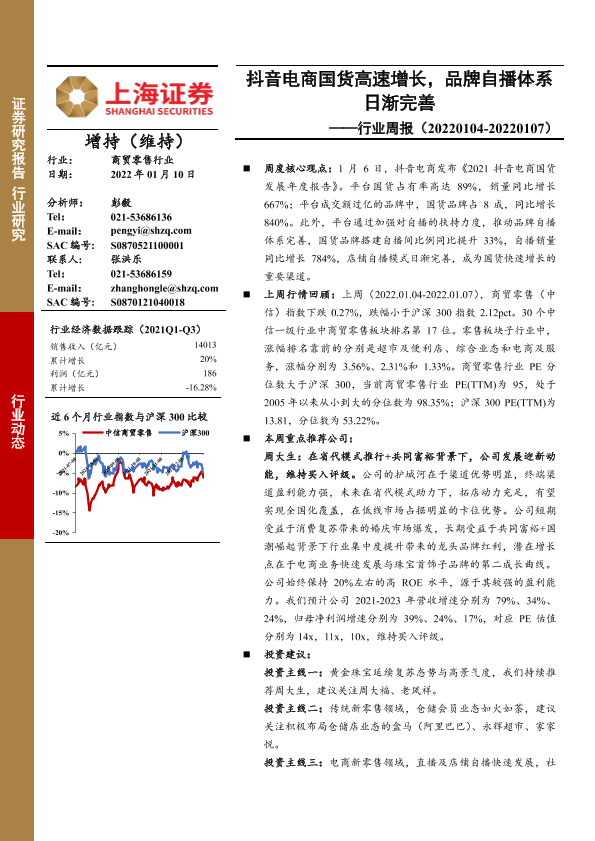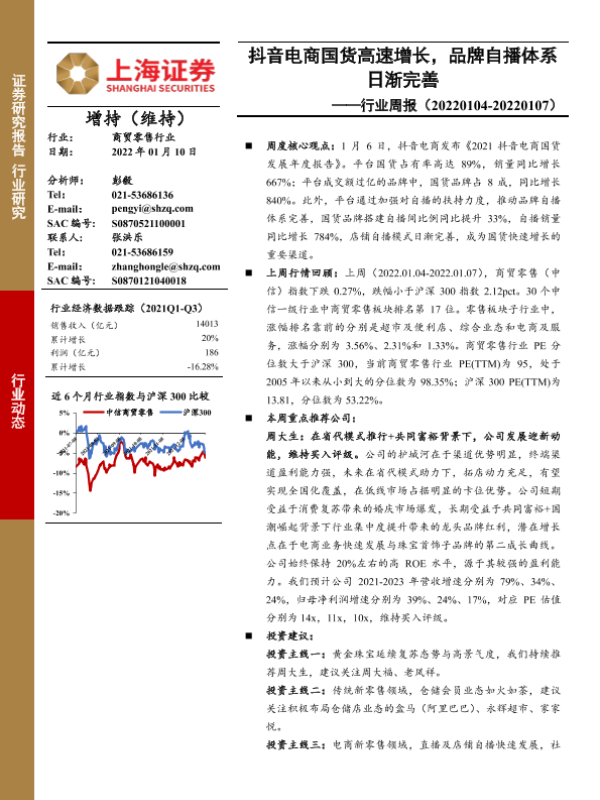 【上海证券】【20220110】商贸零售行业周报:抖音电商国货高速增长,品牌自播体系日渐完善-16页