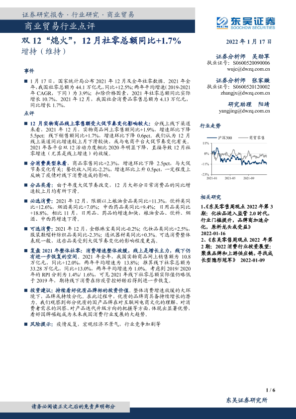 【东吴证券】【20220117】双12“熄火”,12月社零总额同比+1.7%-6页