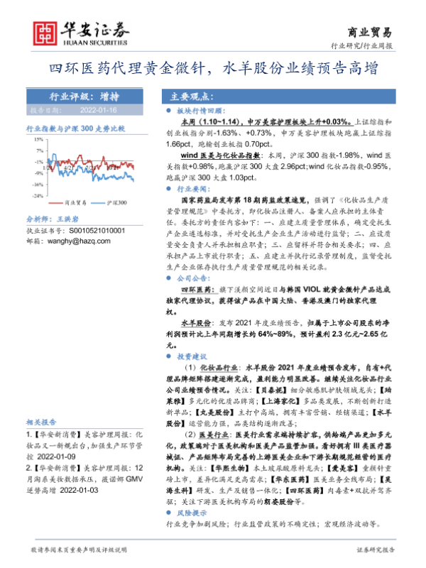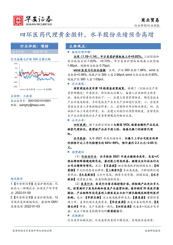 【华安证券】【20220116】商业贸易行业周报:四环医药代理黄金微针,水羊股份业绩预告高增-15页