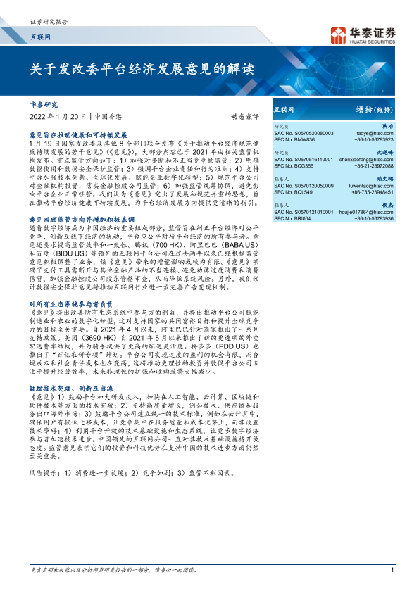 【华泰证券】【20220120】关于发改委平台经济发展意见的解读-6页