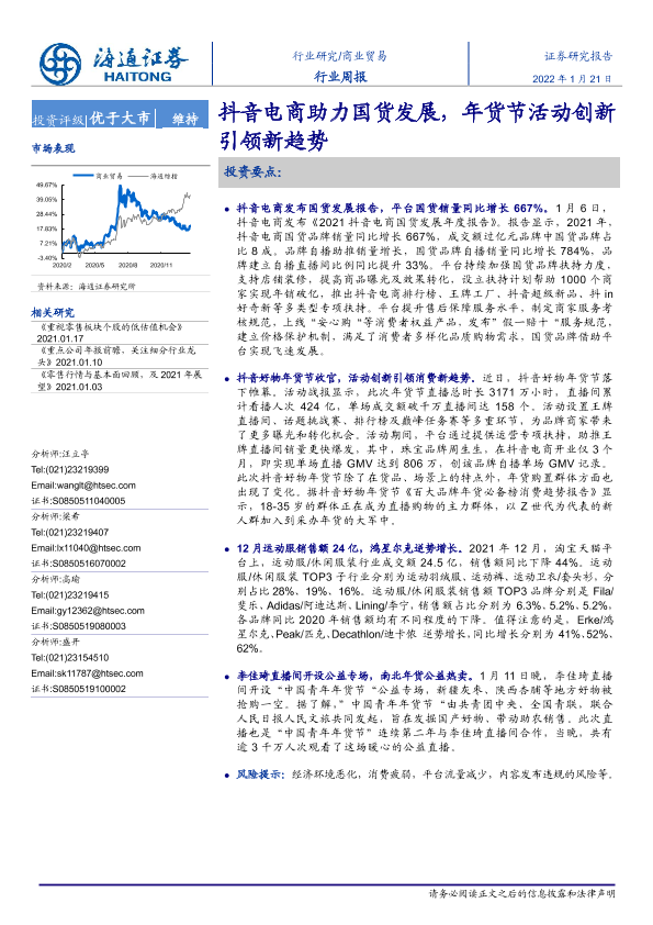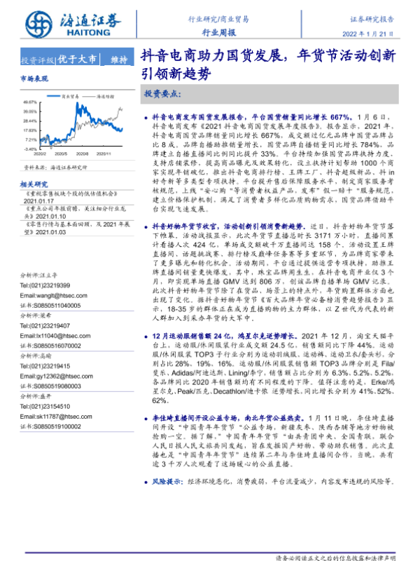 【海通证券】【20220121】商业贸易行业周报:抖音电商助力国货发展,年货节活动创新引领新趋势-10页